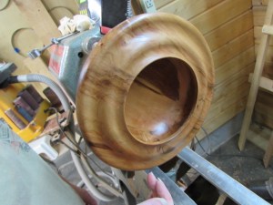 We are not really sure what to use this bowl for, but Tracie really likes the grain and the shape. I made a slightly larger blank for her to play with when she has more time. She is thinking maybe that one will become a fruit bowl. We will see.