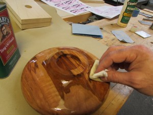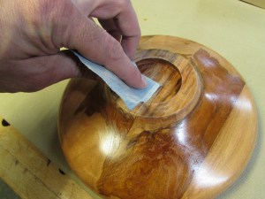 After the bowl had dried, I removed it from the chuck and flipped it over so we could finish the bottom ring that the bowl sits on.