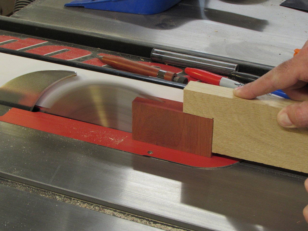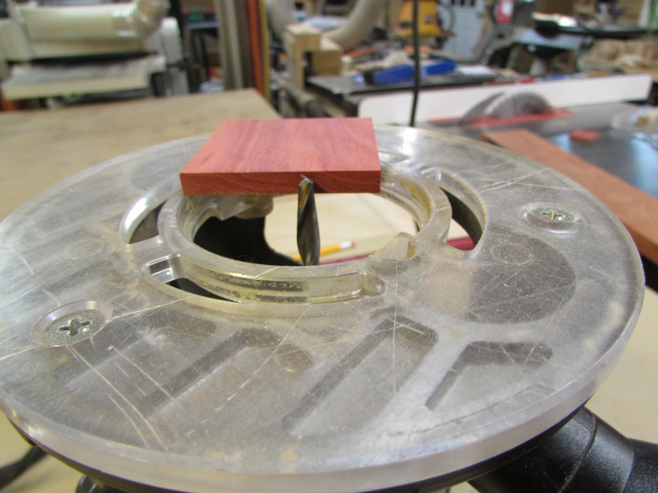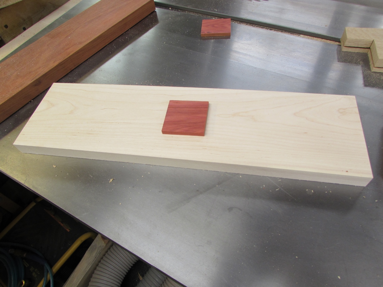 First step was to mill down some maple and cut a 2″x2″ square of redheart.