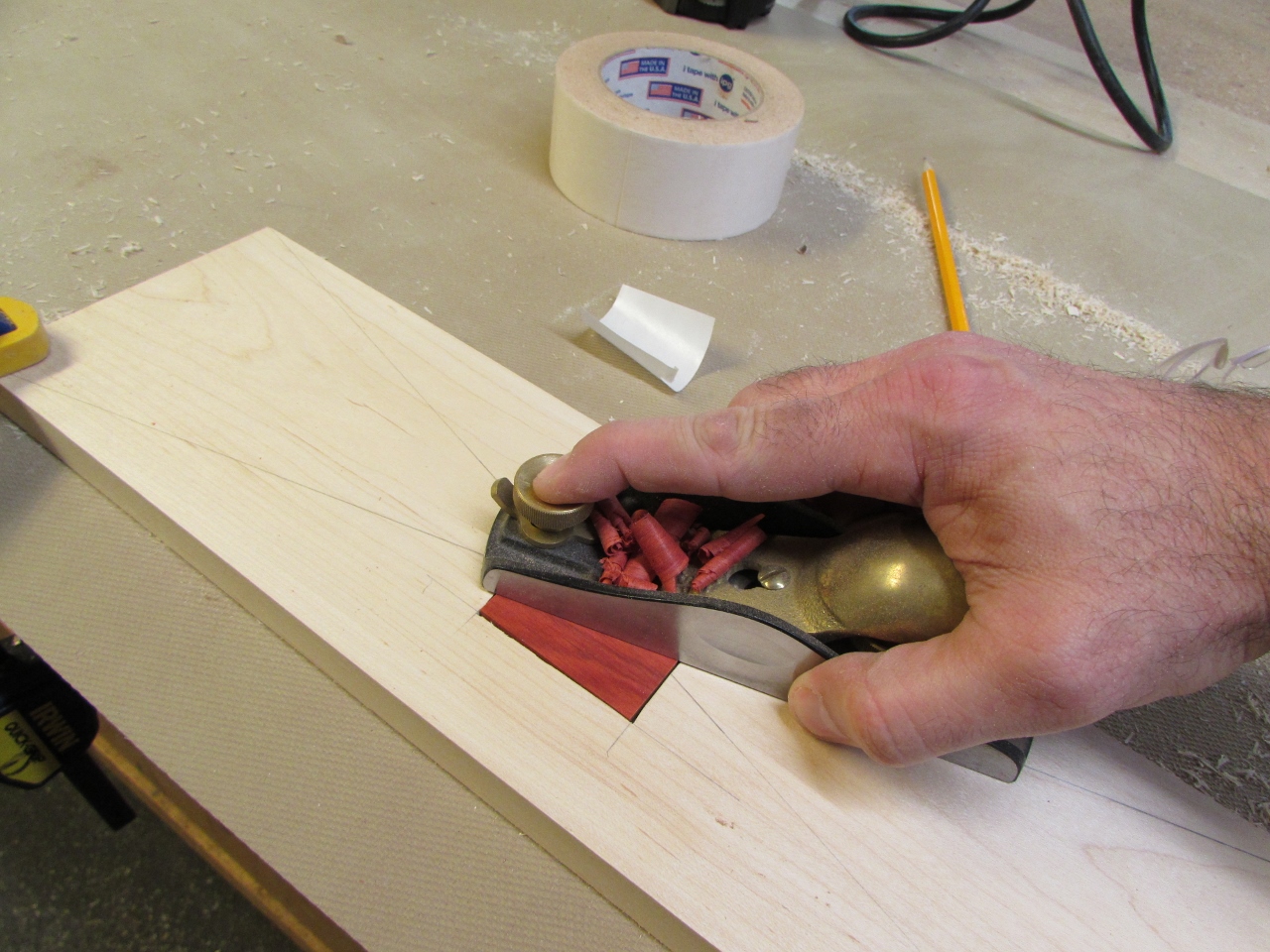 I used my block plane to plane the redheart down flush to the top of the maple.