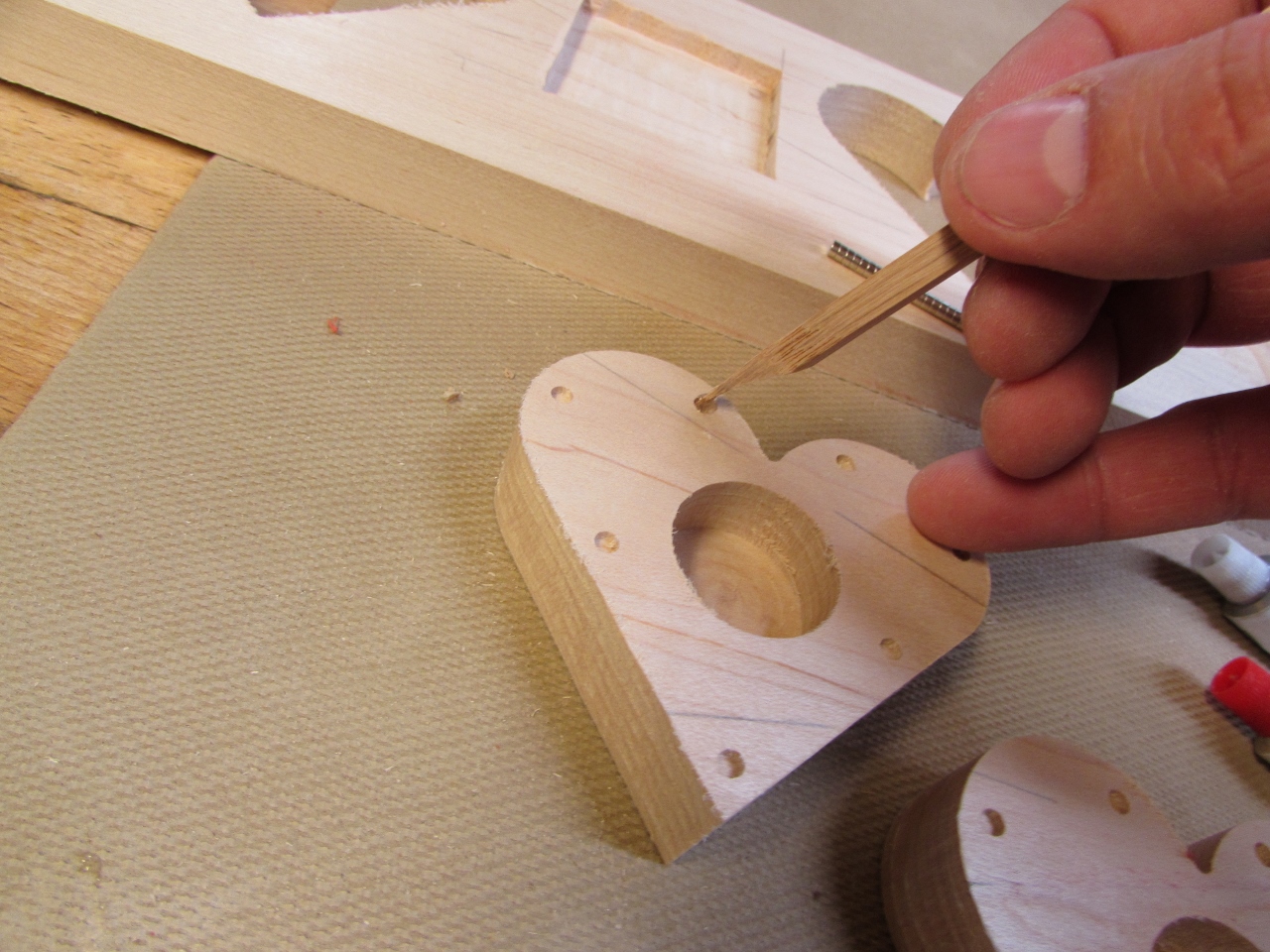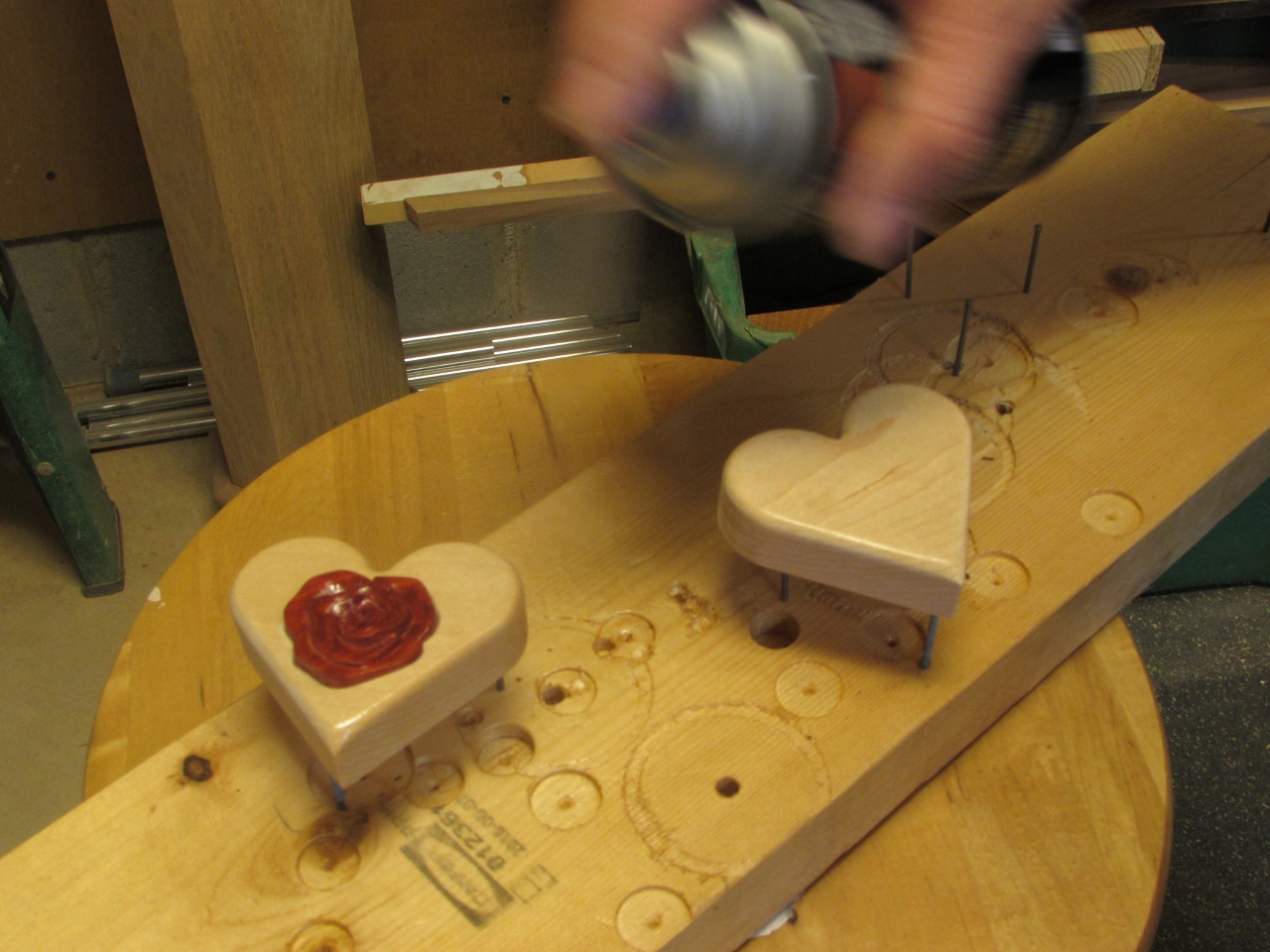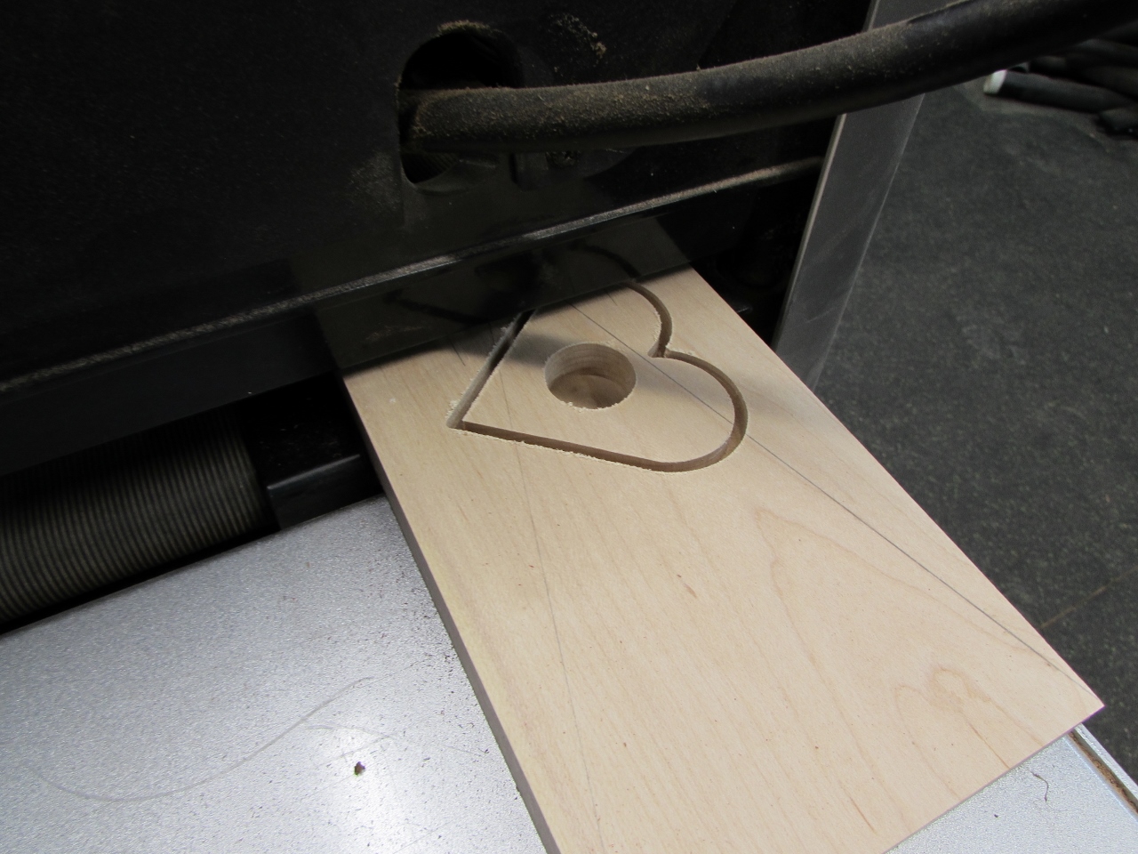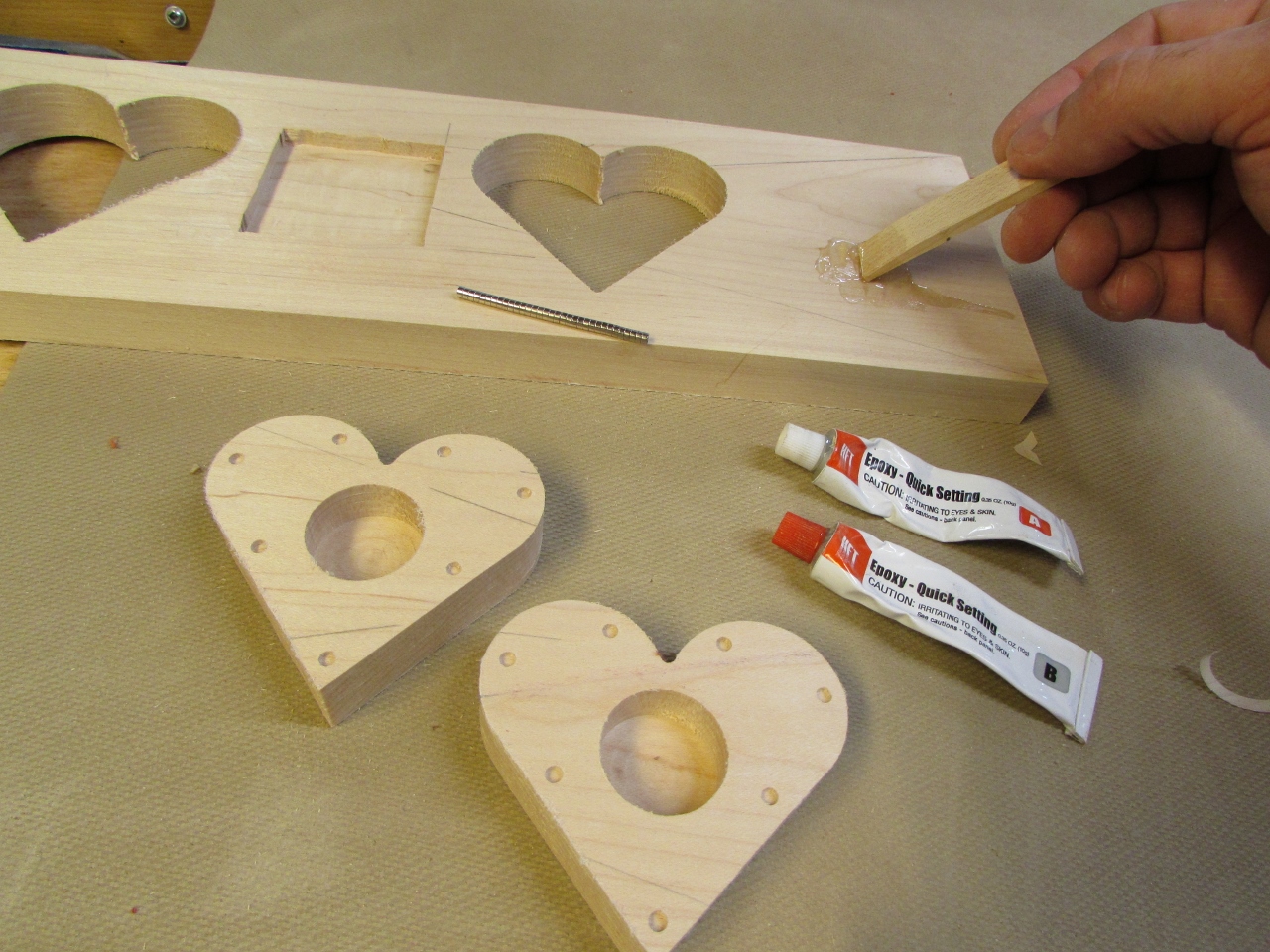 For the maple, I used a trick that I saw online. I ran the panel, upside down through my drum sander until I sanded through the back of the panel freeing the hearts without any damage.