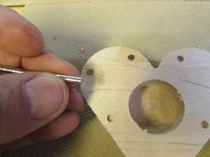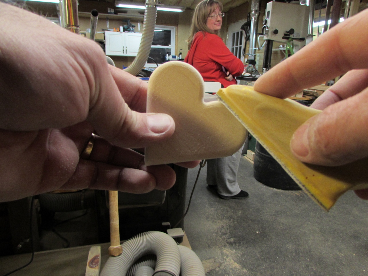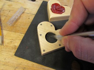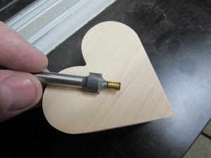 I used it to radius the top and bottom edges, all the way around. The brass tip was just small enough to fit into the dip at the top of the heart.