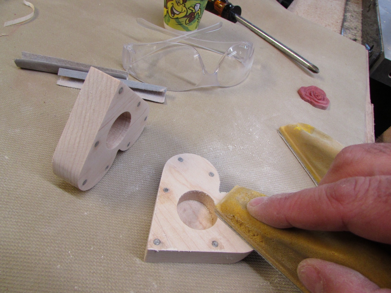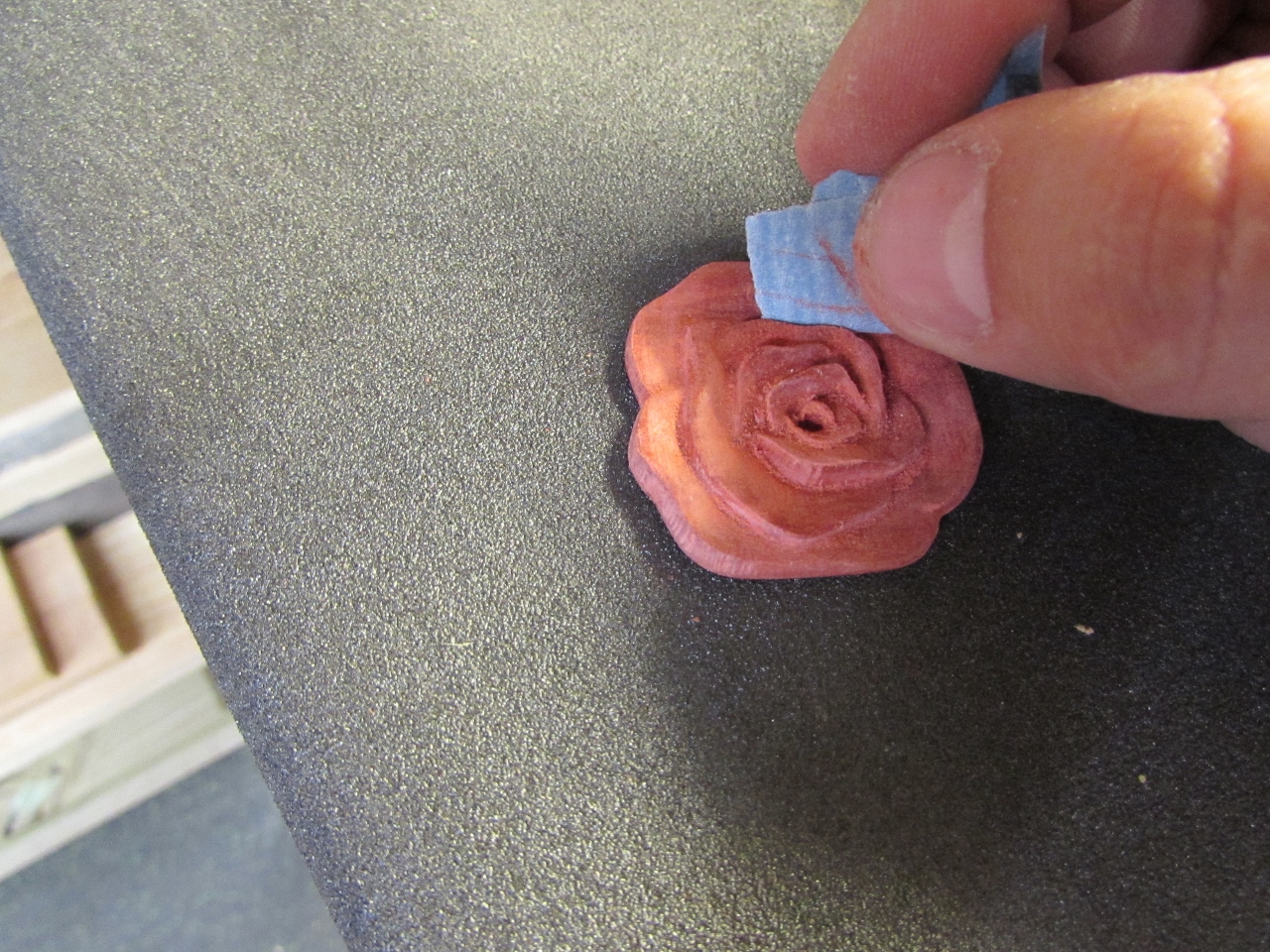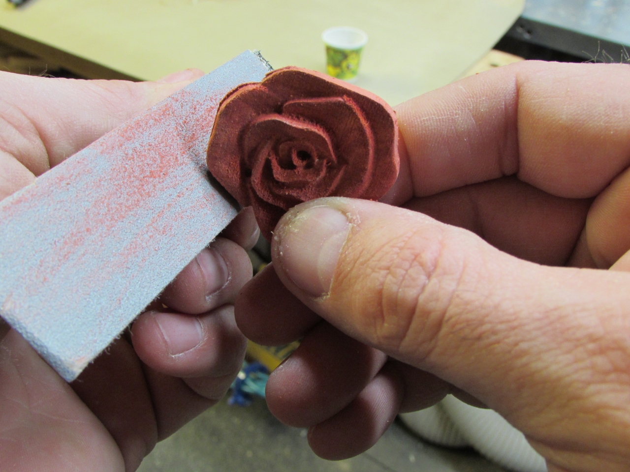 After a brief test fit, I spent a lot of time sanding first the edges, then the surface of the rose, to remove as much of the tooling marks as I could.