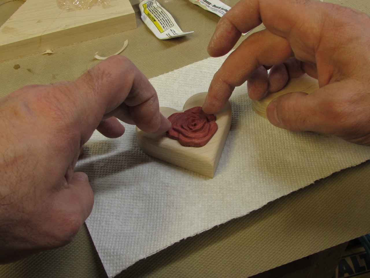 All the sanding is done so I mixed up some more epoxy and attached the rose to the lid of the box.