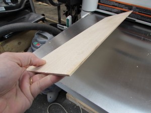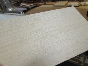 I found an interesting looking piece of hard maple and planed it down to 1/8″ thick.