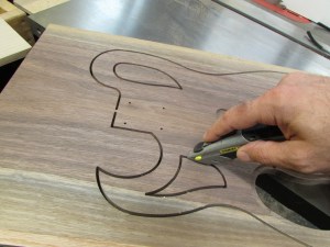 Before we can start carving out this guitar body, I need to finish up my design on the computer and convert everything into vectors that can be imported into my carving software for my Carvewright CNC router.