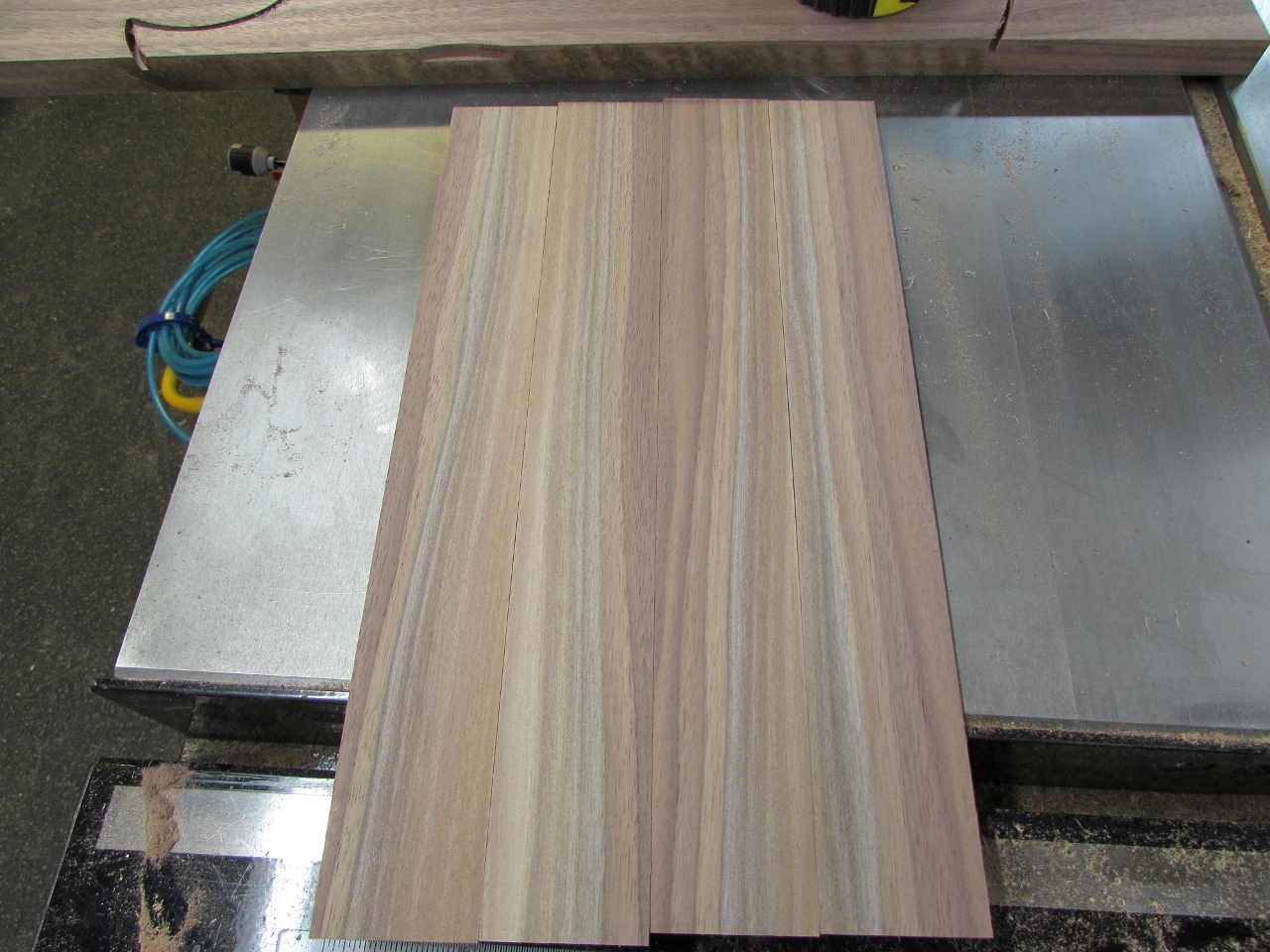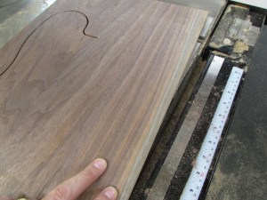 I trimmed off a 2″ wide piece of the sapwood, that has some really nice coloring, then re-sawed it in half.
