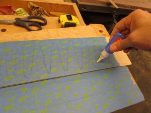 I plan to carve this piece really thin. Thin stuff can easily break if I use my double-sided tape, then try to pry it apart. So, for this, I am using painter’s tape on both my veneer, and the plywood backer board, then I use CA glue to attach them.