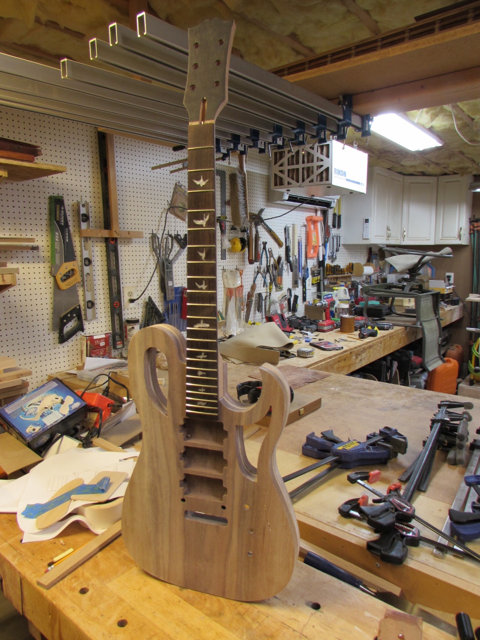 And when the glue was dry, I pulled all the clamps and test fit the neck.