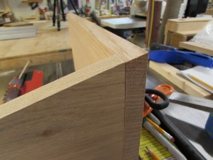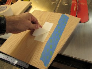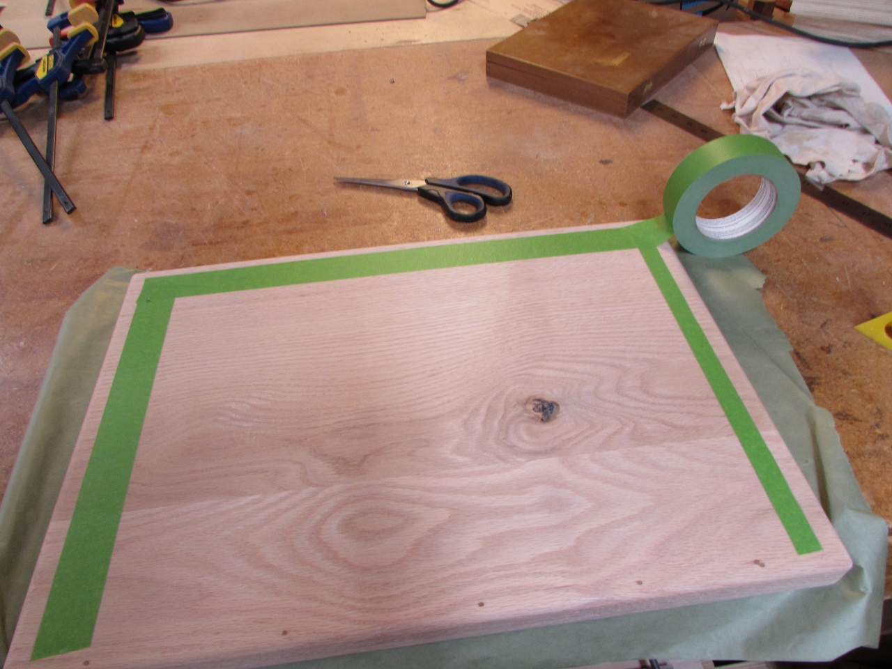 The last piece to go on will be the top but I cannot easily finish the inside of the box with the top mounted in place, so I marked the location, and applied painter’s tape to the spot.