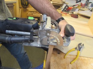 Then set the Domino to plunge downward, to cut the opposing holes in the bottom plate.