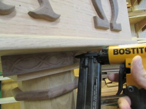 Then I applied glue to the top of the column and centered the bottom plate on top of it and used my brad nailer to hold it firmly in place while the glue dried.