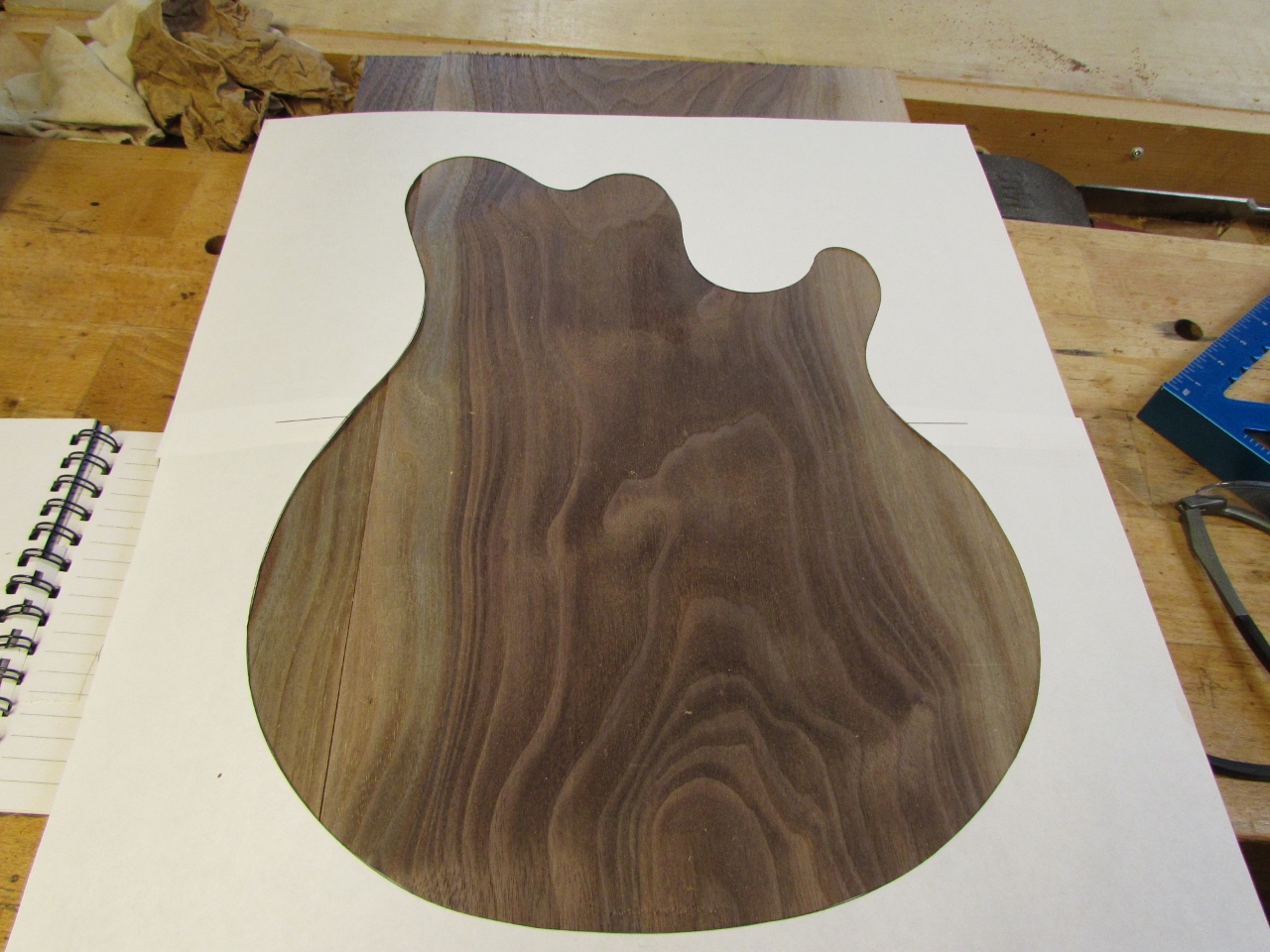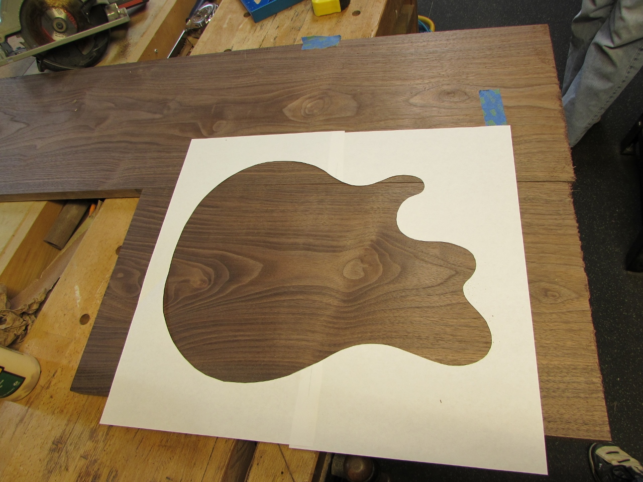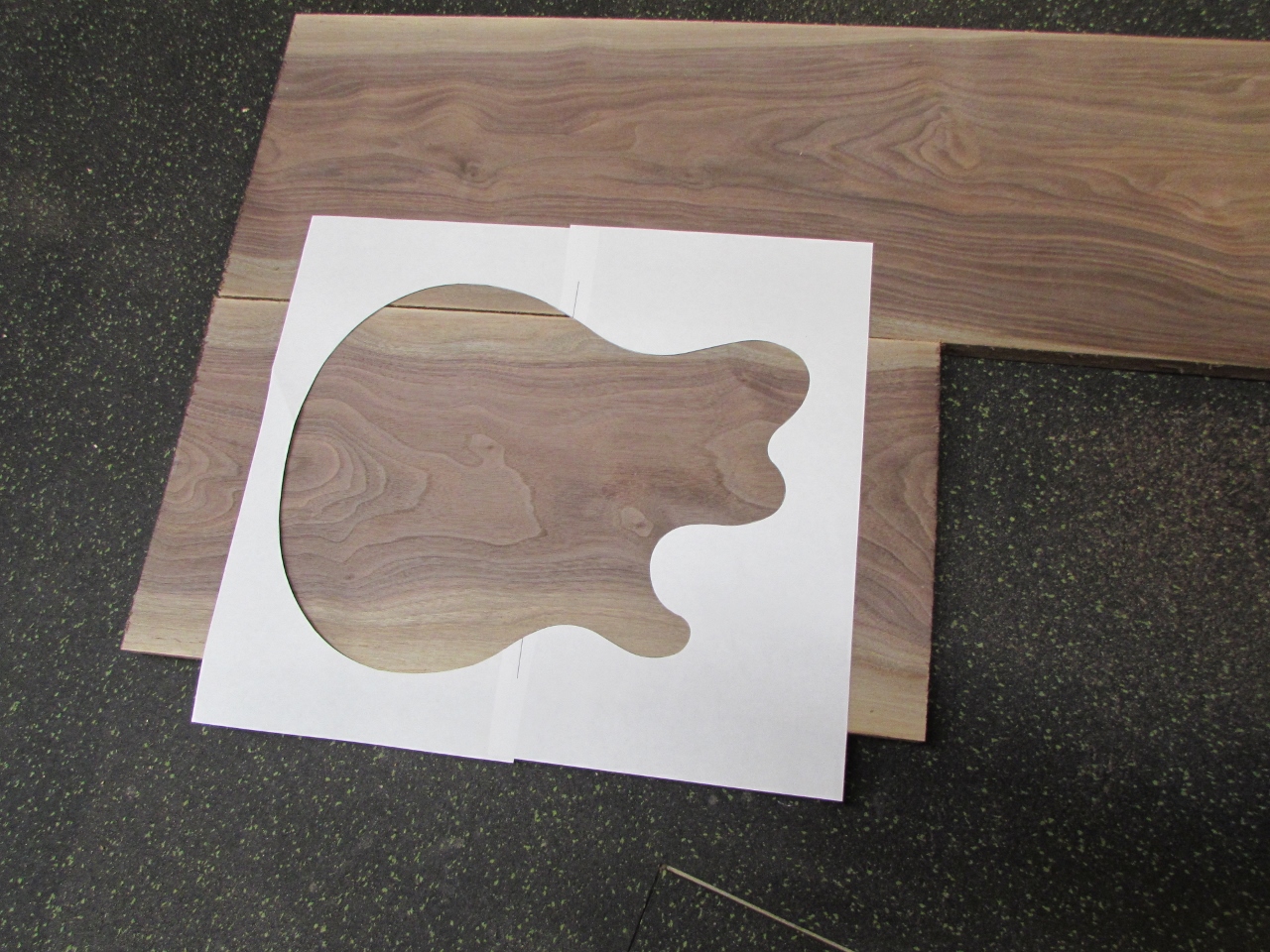 I printed out a full size silhouette so he could pick out the areas of the boards he wanted to use for the guitar body.