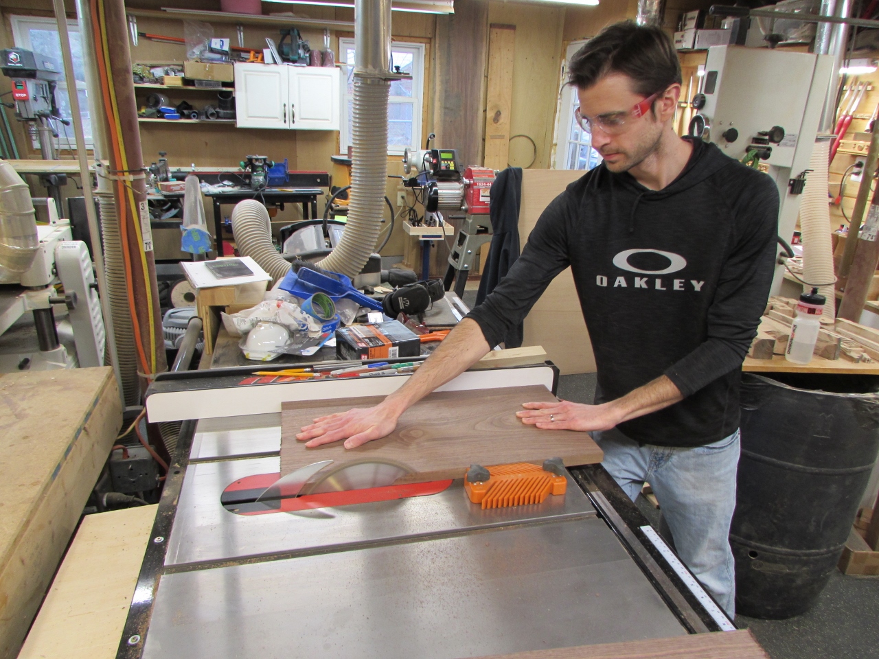 We needed a piece of wood wider than the board so I cut out the areas he liked best and tried to book match some grain to the sides, using the remaining boards.