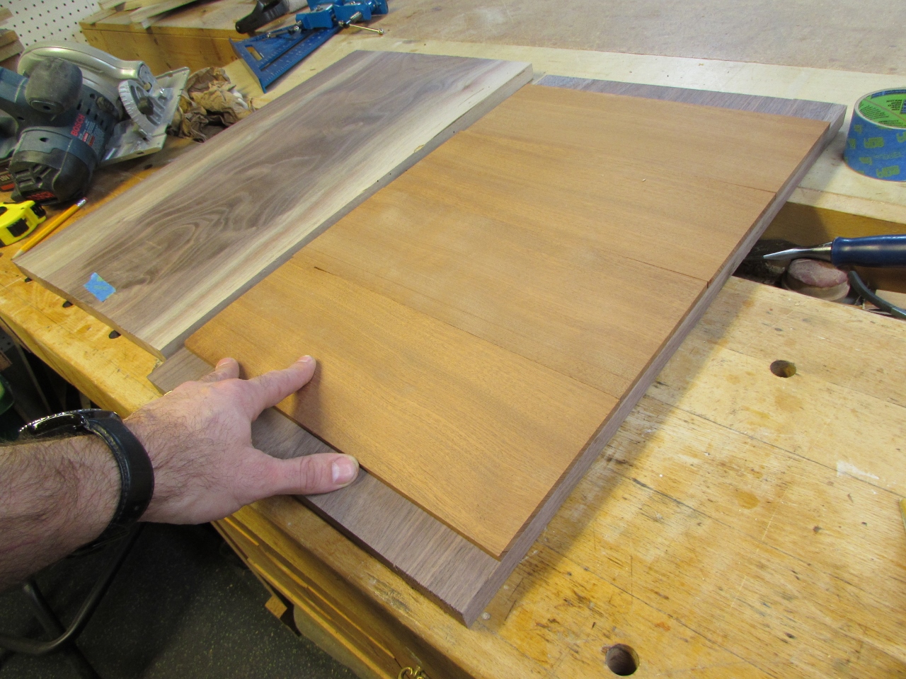 I had one piece of mahogany that was just large enough to be cut in half, then re-sawn to give me four equal pieces.