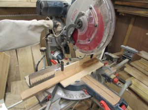 Getting back to the body of the bier, I cut out all of my side pieces that will create the channel for the rails to hook into. I cut them all together on my miter saw so that they would all be exactly the same length.