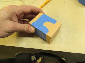 To give myself a place to attach the threaded inserts, I cut a 45 degree block. This probably could have been done in a safer fashion, but I couldn’t think of a way at the time…