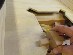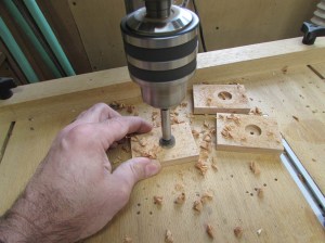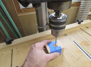 Then I drilled the clearance hole through from the other side. I plan to put a threaded insert into the bier and a lock-nut on the screw to hold it captive to the cleat. I am not sure if there will be enough clearance for this, but I will have to wait and see.
