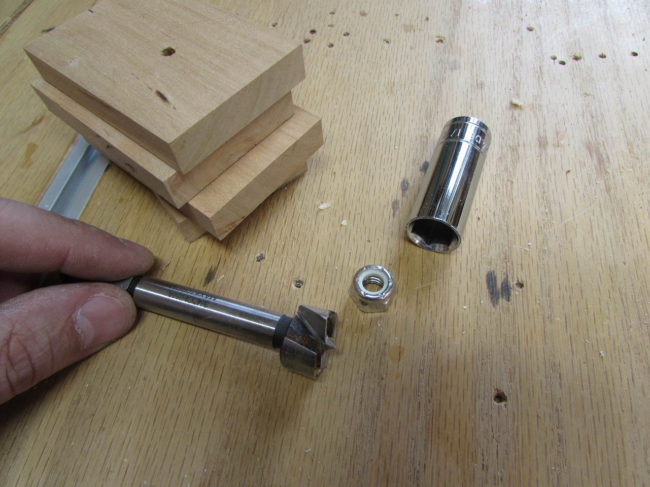 My plan is to make the thumb screws captive so I drilled a counter-bore on the bottom side, large enough for a socket.