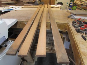 I planed this down to 7/8″ thick, then ripped it down to 1-3/4″ wide.