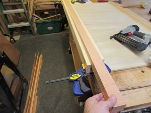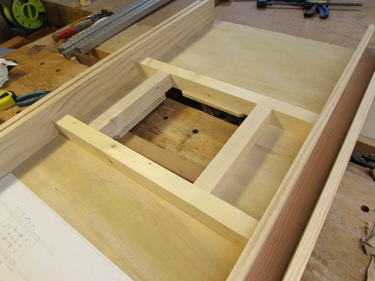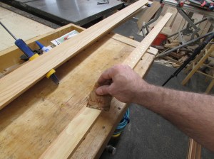 I was going to use some 2″x8″ material to create the 8′ long rails, but I couldn’t find any that was dead straight and I did not have any confidence that it would stay that way over time. I did have some beautiful straight-grained Douglas fir wood flooring though.