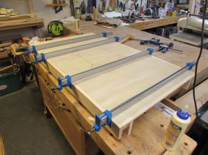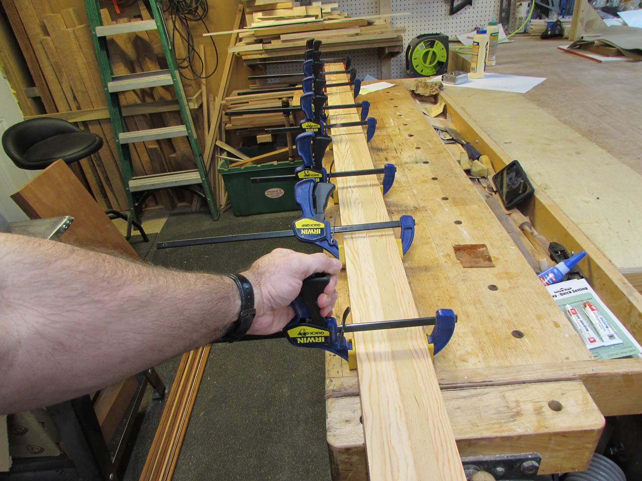 Then clamped both rails together back to back. When they were dry, I made a single pass through the planer to clean up the glue joint and make the rails perfectly square. I am happy to say that they were dead straight as well.