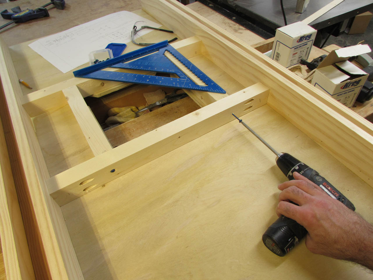 Then I attached the short members with screws through the side of the longer ones, making sure the boards stayed square.