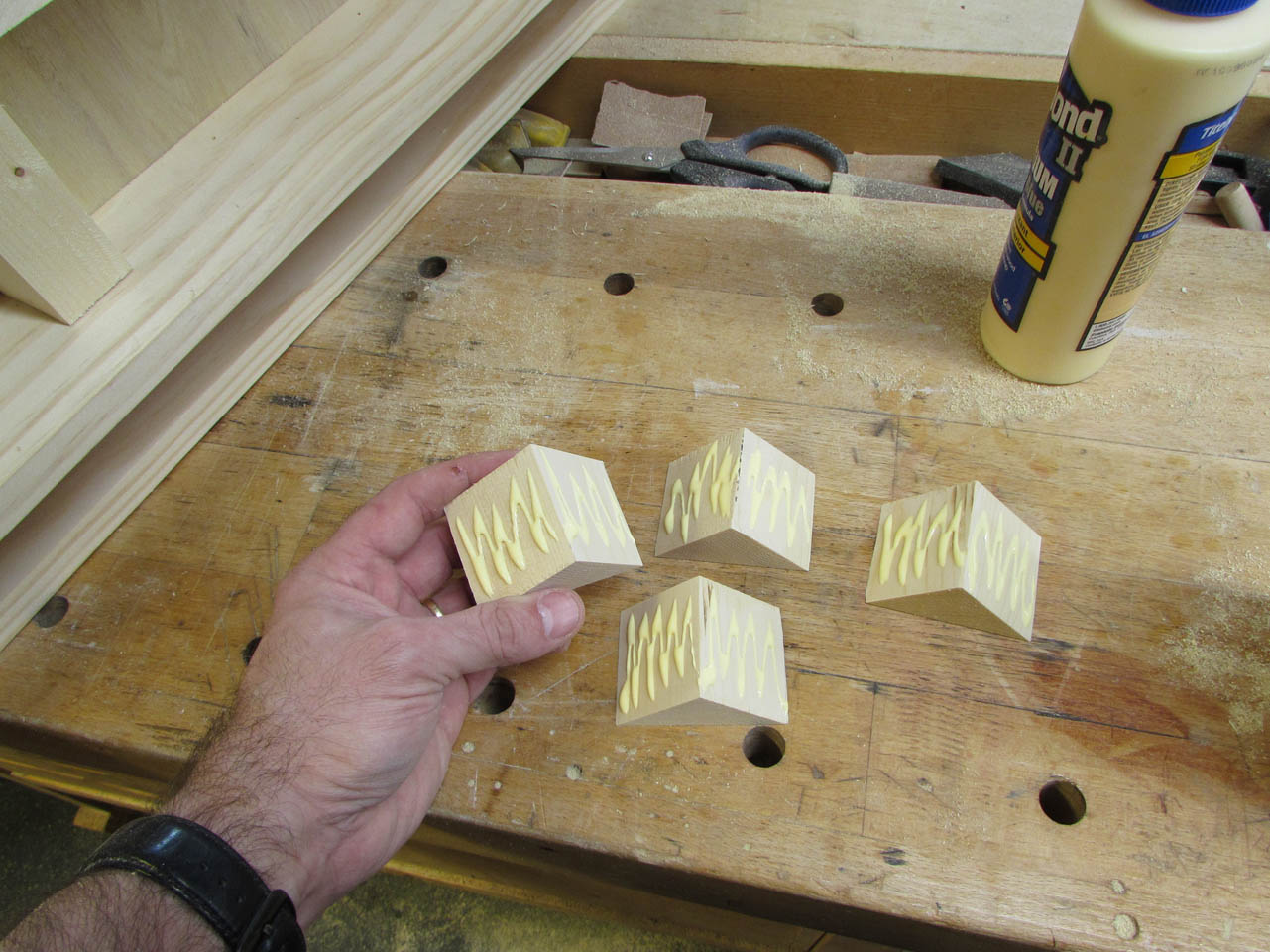 I used glue to attach the blocks and a couple of pin nails to hold them in place while they dried.