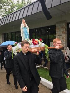 I handed the bier over and they sent me some pictures of the May procession. Looks like it held up pretty good in the rain.