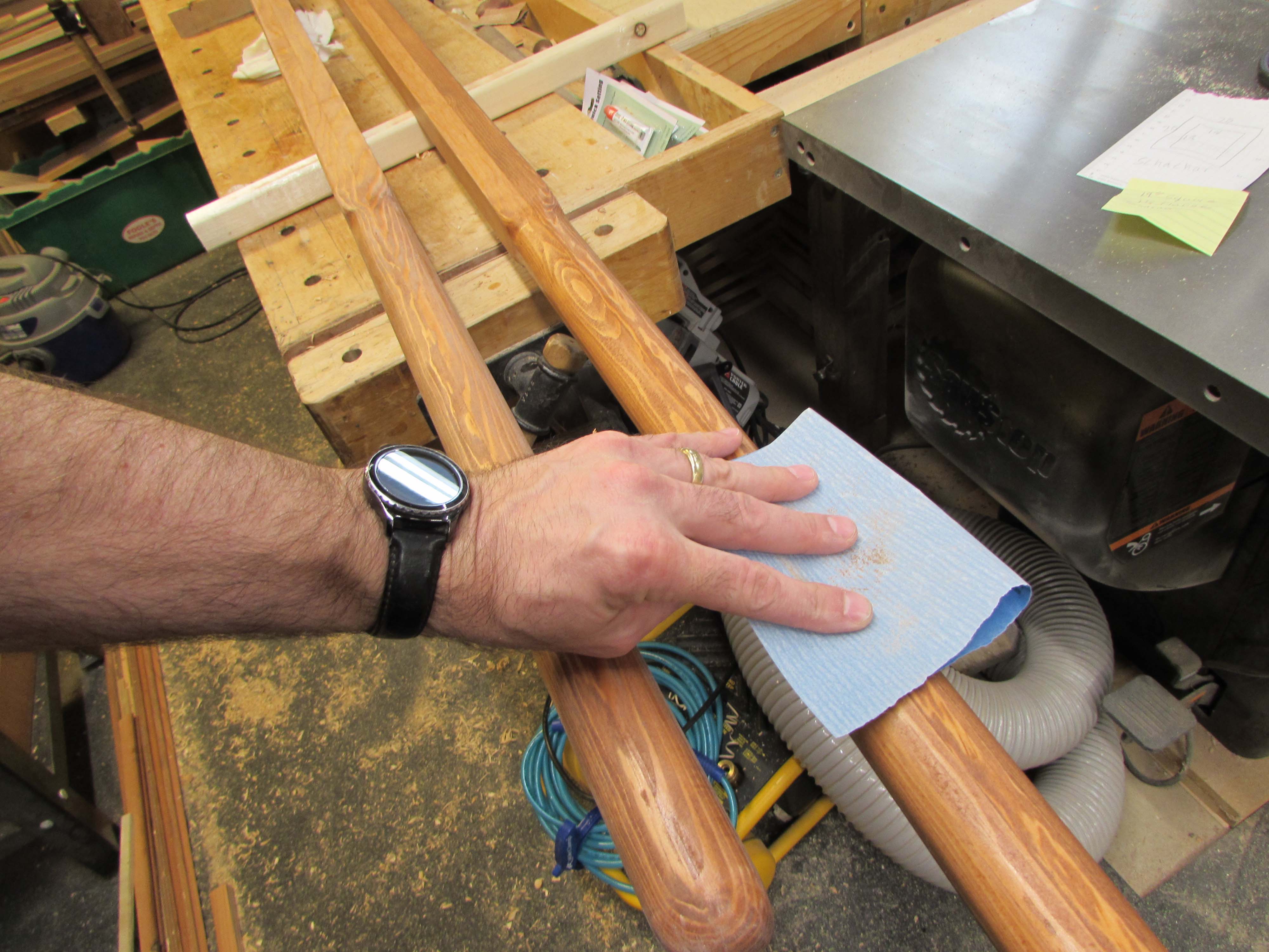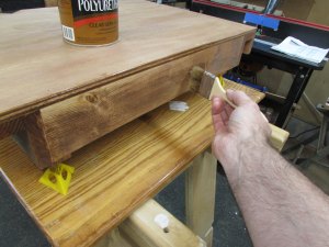 For the rest of the rails and the bier, I am using a semi-gloss polyurethane.