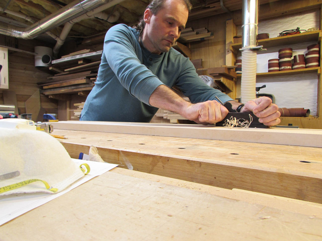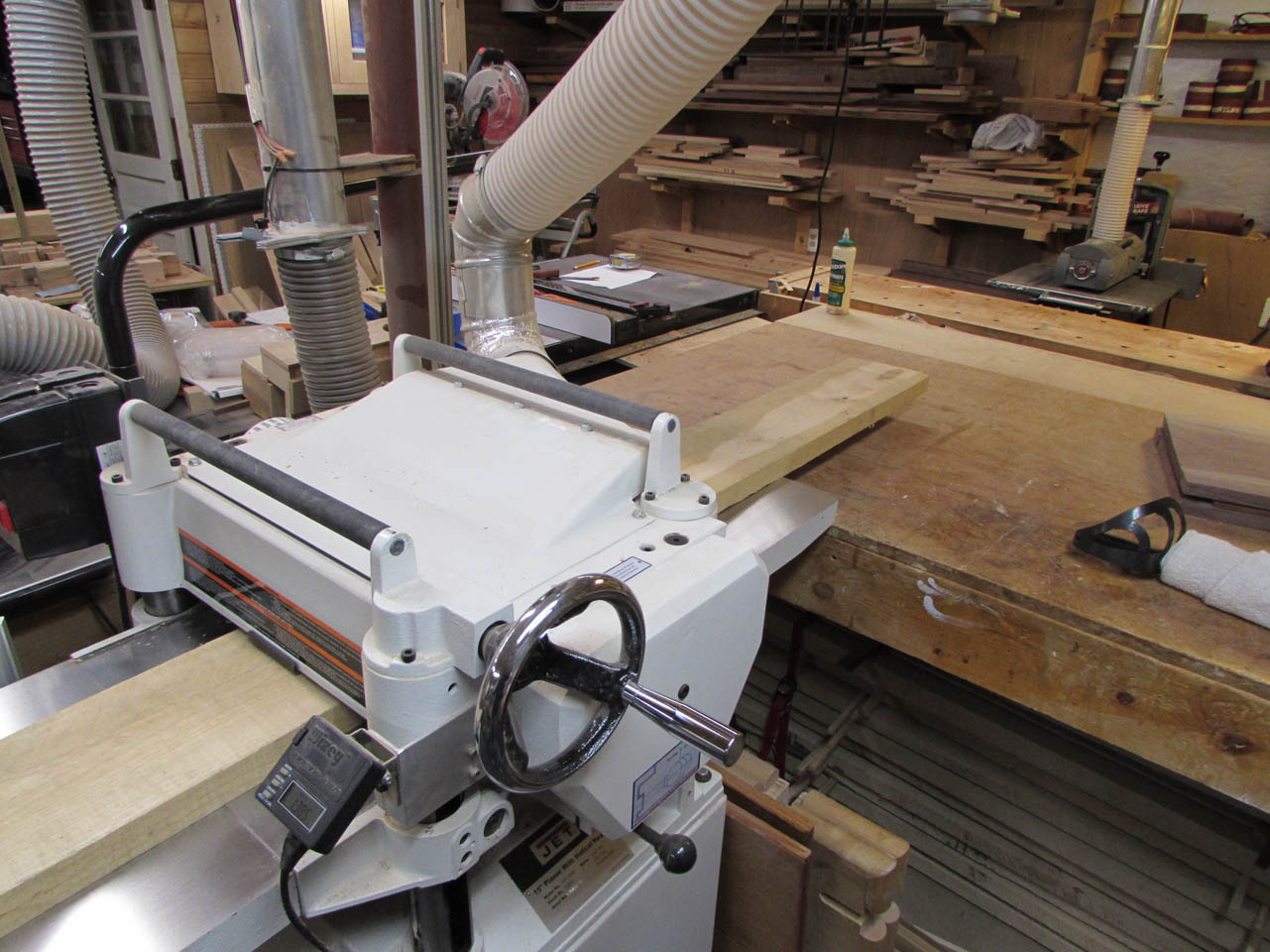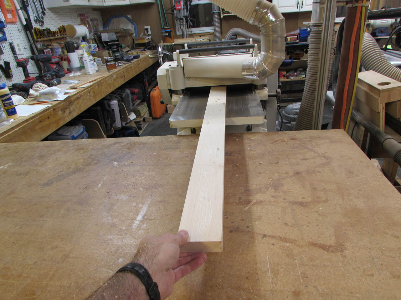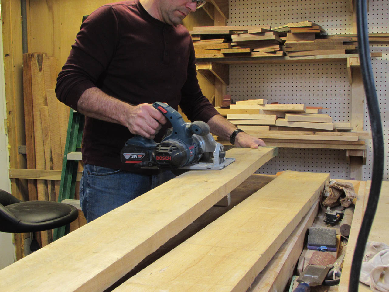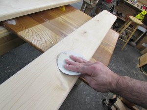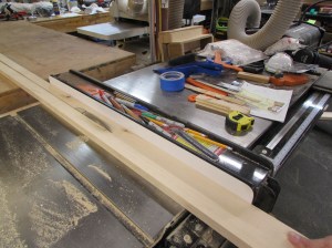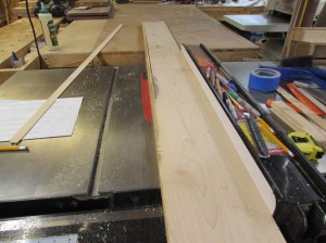 All three boards were rough-sawn, but very straight. I planed both faces down smooth and left the boards 1-1/8″ thick. Then I cleaned up the sides and cut them down to width on the table saw.