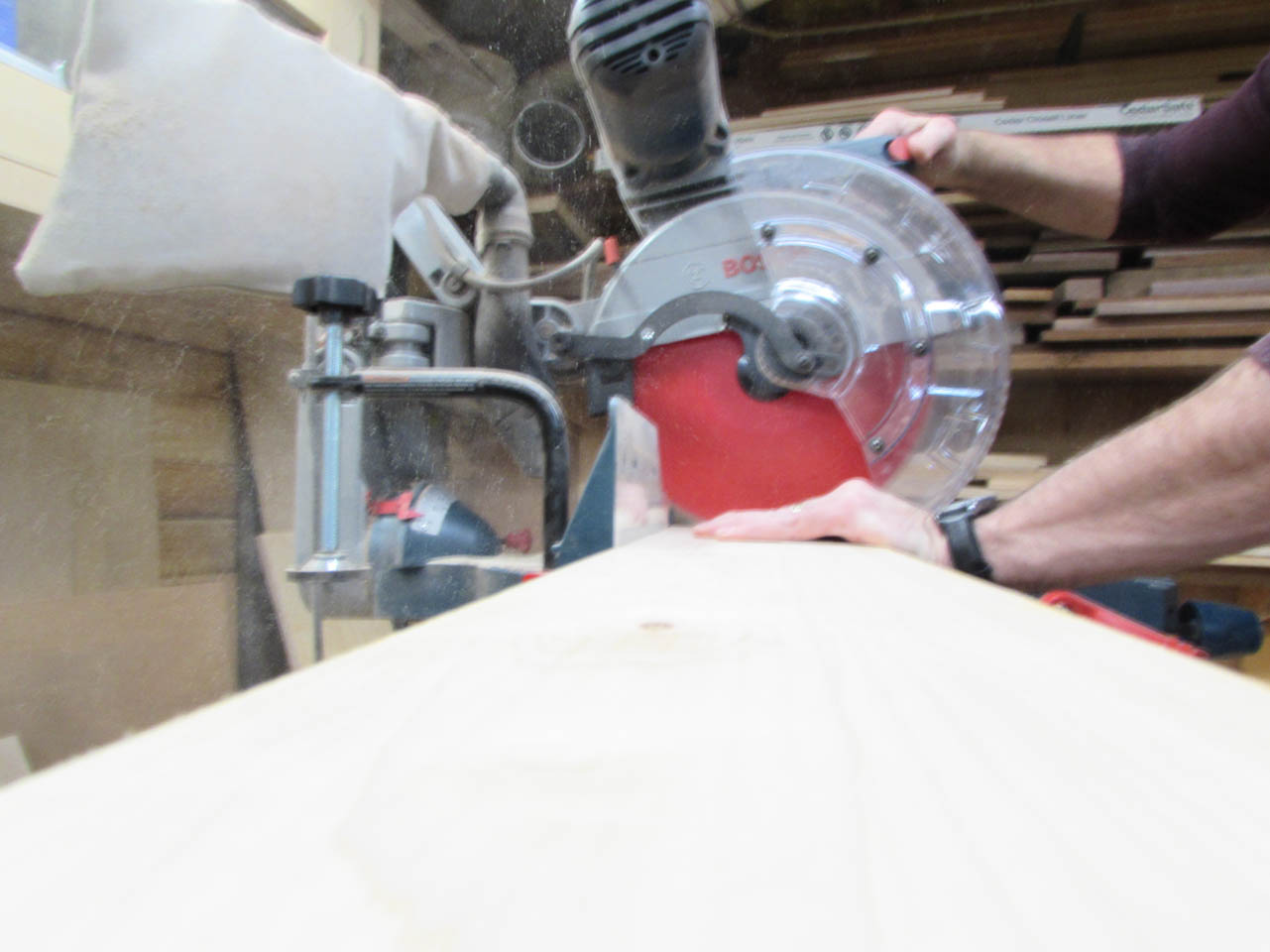 I used the miter saw to cut away any planer snipe and make the boards the correct final length.