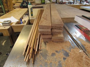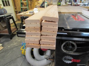 After the maple was prepped, I moved on to the bed slats. I acquired some beautiful, straight-grained Douglas fir flooring.