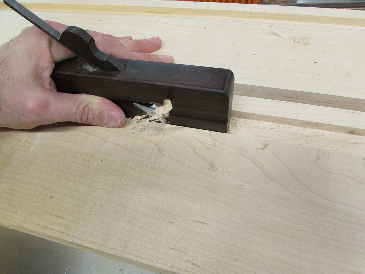 I discovered that my shoulder plane was exactly the correct width so I set the blade very shallow to take small cuts and cleaned out the fuzzy bits on the bottom of the groove.