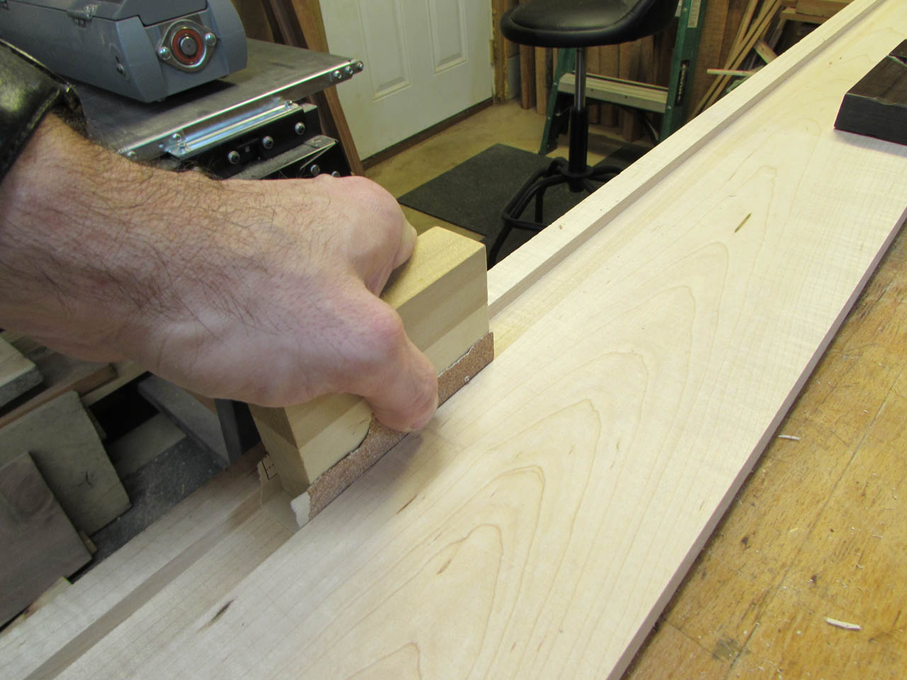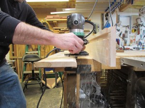 I ran the router back and forth to cut away the end. Since the maple is hard, I did this in two passes, lowering the router each time.