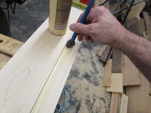 I applied glue to the groove in the sides and tapped the support rail into place.
