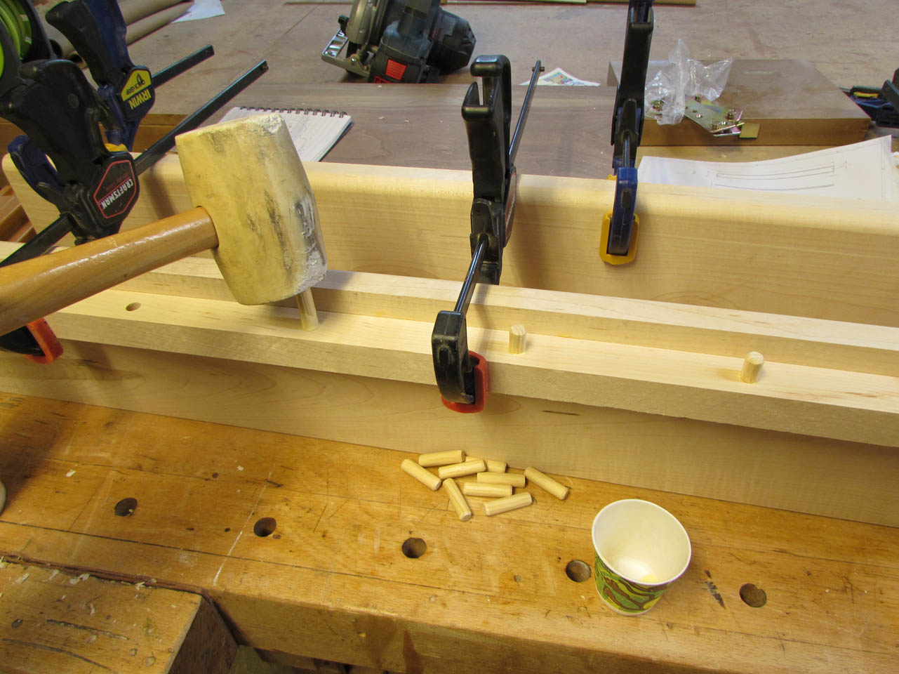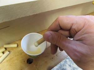While the glue was drying, I dipped the dowels into some wood glue and installed them as well.