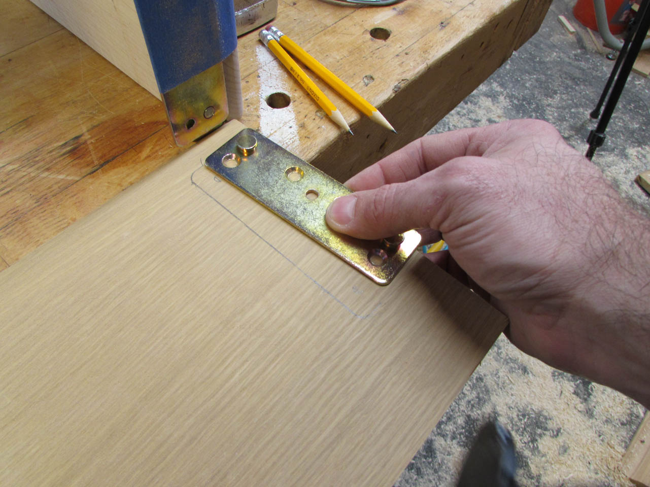 After I marked the outline of the plate, I removed the plates and located them against the lines I just traced to transfer the hole locations.