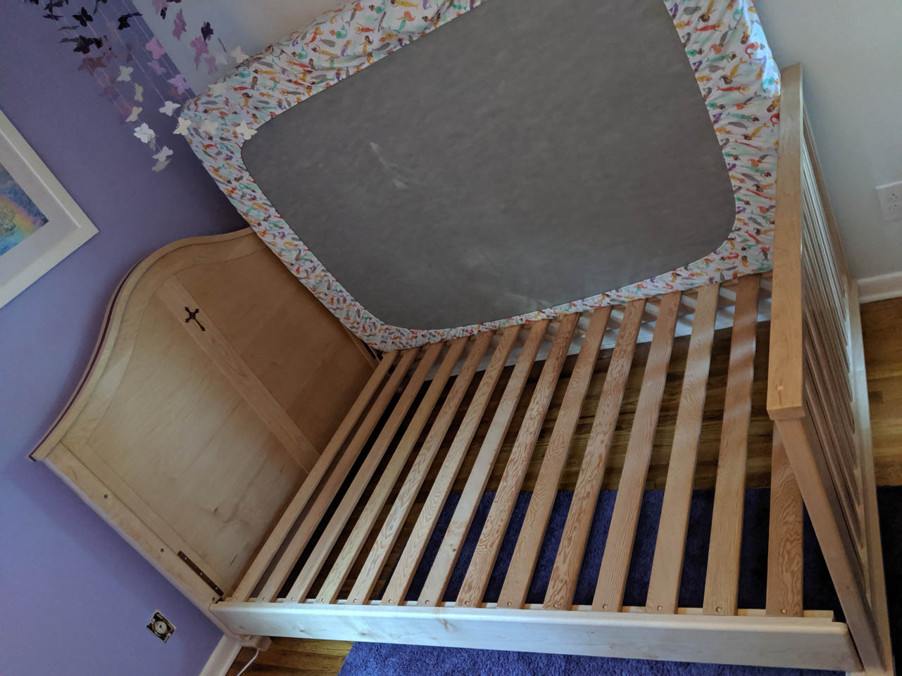 Remember the Maple & Purpleheart Crib that I made about three years ago? Well that little girl is not so little any more. Now that she is climbing out of her crib, Mom and Dad asked if the crib could be converted to a bed, in a way that it could go back to a crib if it was ever needed again.