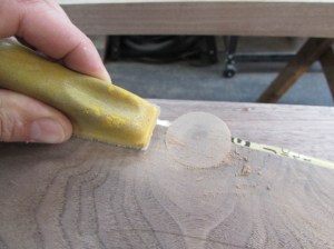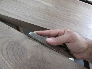 After about a half of an hour, I use my 2″ wide chisel to scrape off any glue squeeze-out while it is still soft.