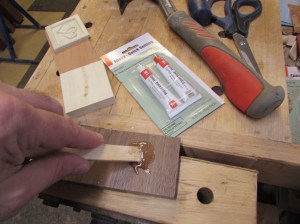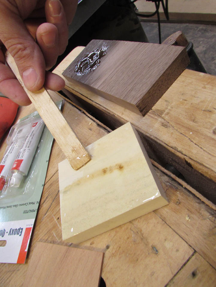 The thin stripe will look good with the holly so I mixed up some 2-part epoxy to attach it.