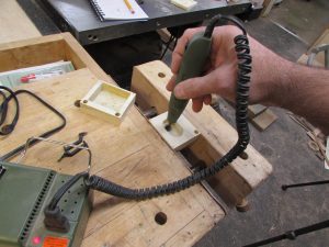 The top from the first carve was the best so I cut it off and prepared to attach it to one with the correct back side. I decided to add a thin layer of cherry that was left over from the wood used to make the chair from Pope Francis’ visit in September 2015. I have saved a few pieces of the left-over wood to use on special occasions like this.