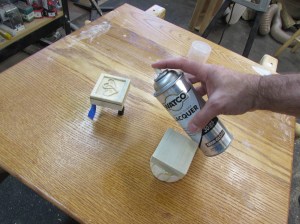 After a final sanding I applied about three coats of clear, satin spray lacquer.