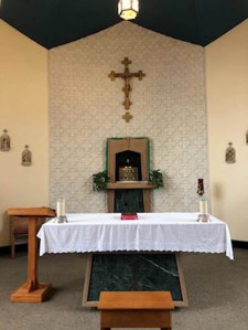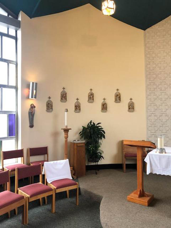 The pictures above and below show the existing chapel furniture that will be replaced. The first piece that I am focusing on will be the ambo. This is my design: AMBO.pdf