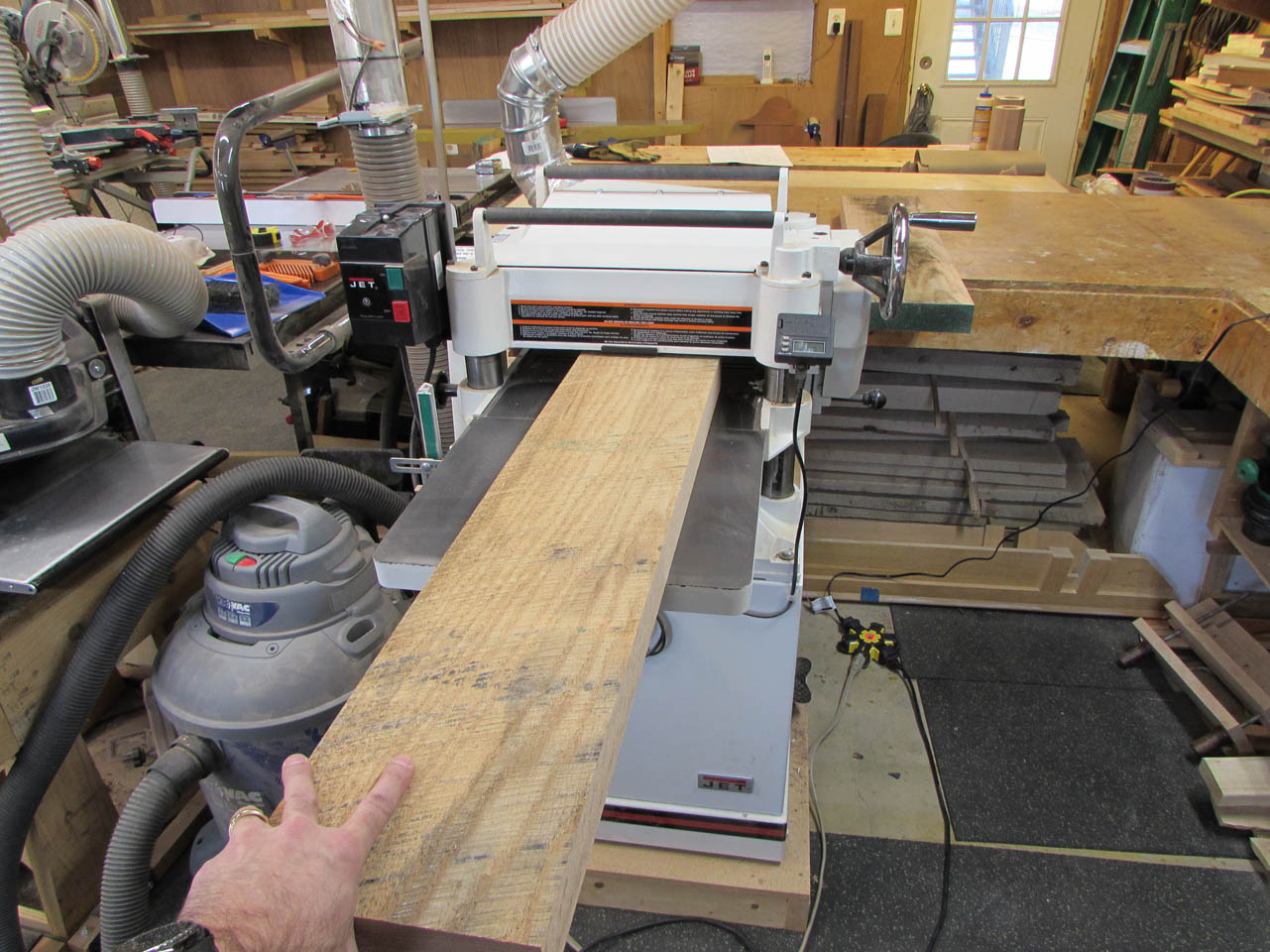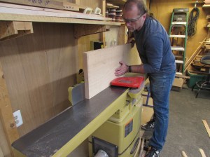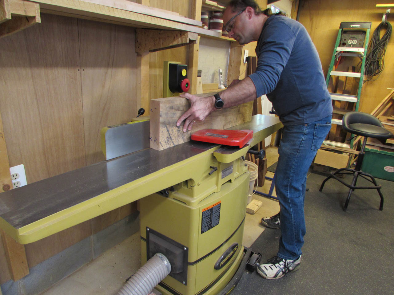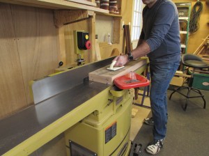 I joint the face and edge of some 4/4 stock to create the top plates.