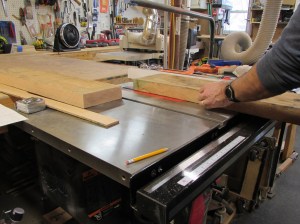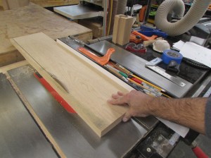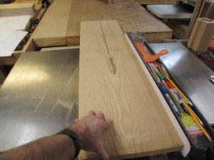 With one edge cleaned up, I can cut the opposite side parallel to the clean edge. It also allows me to make the board narrow enough to fit face down on the 8″ jointer.