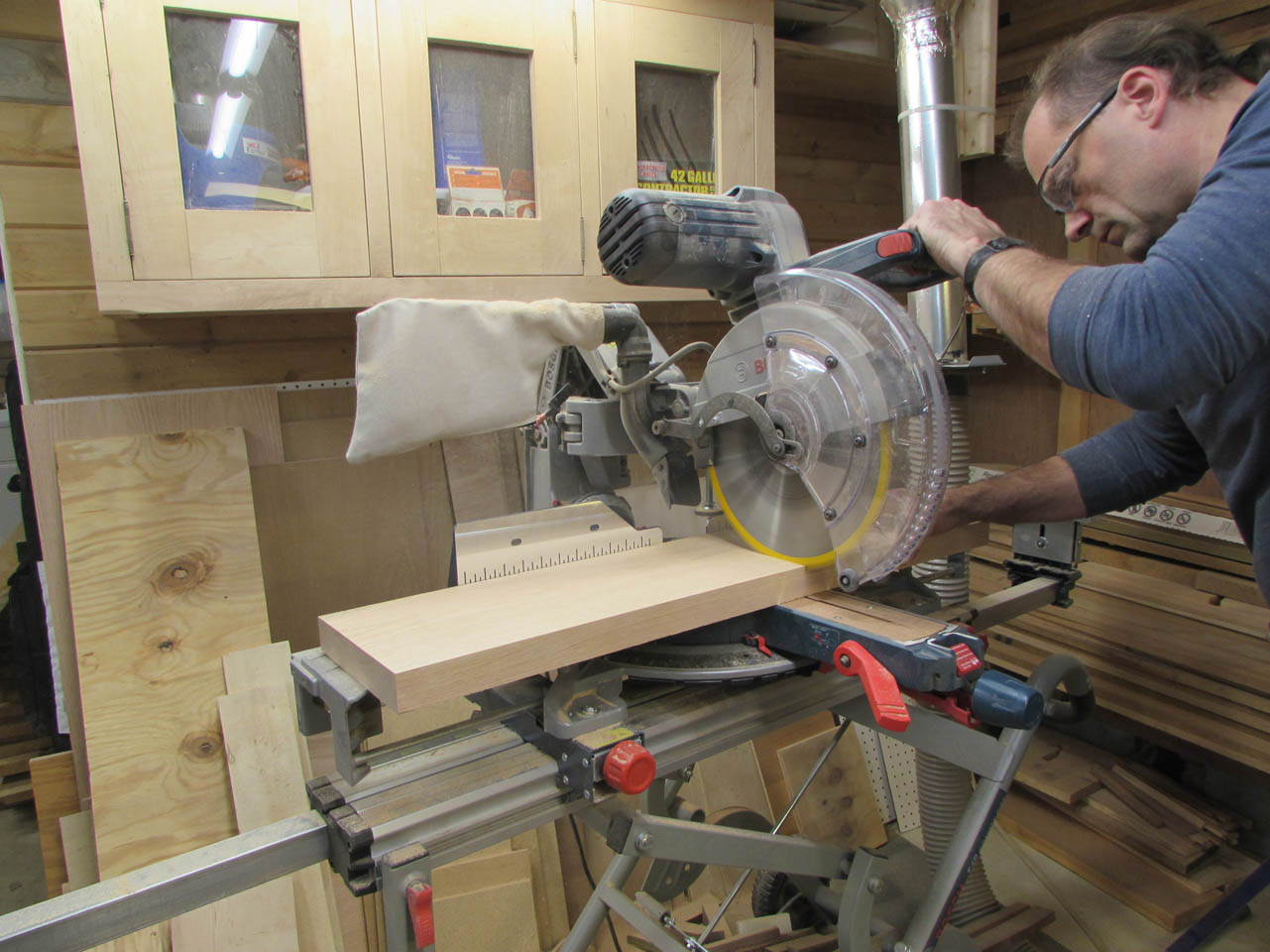 I flipped my blade back to 90 degrees and cut the pieces to exactly 4″ wide.