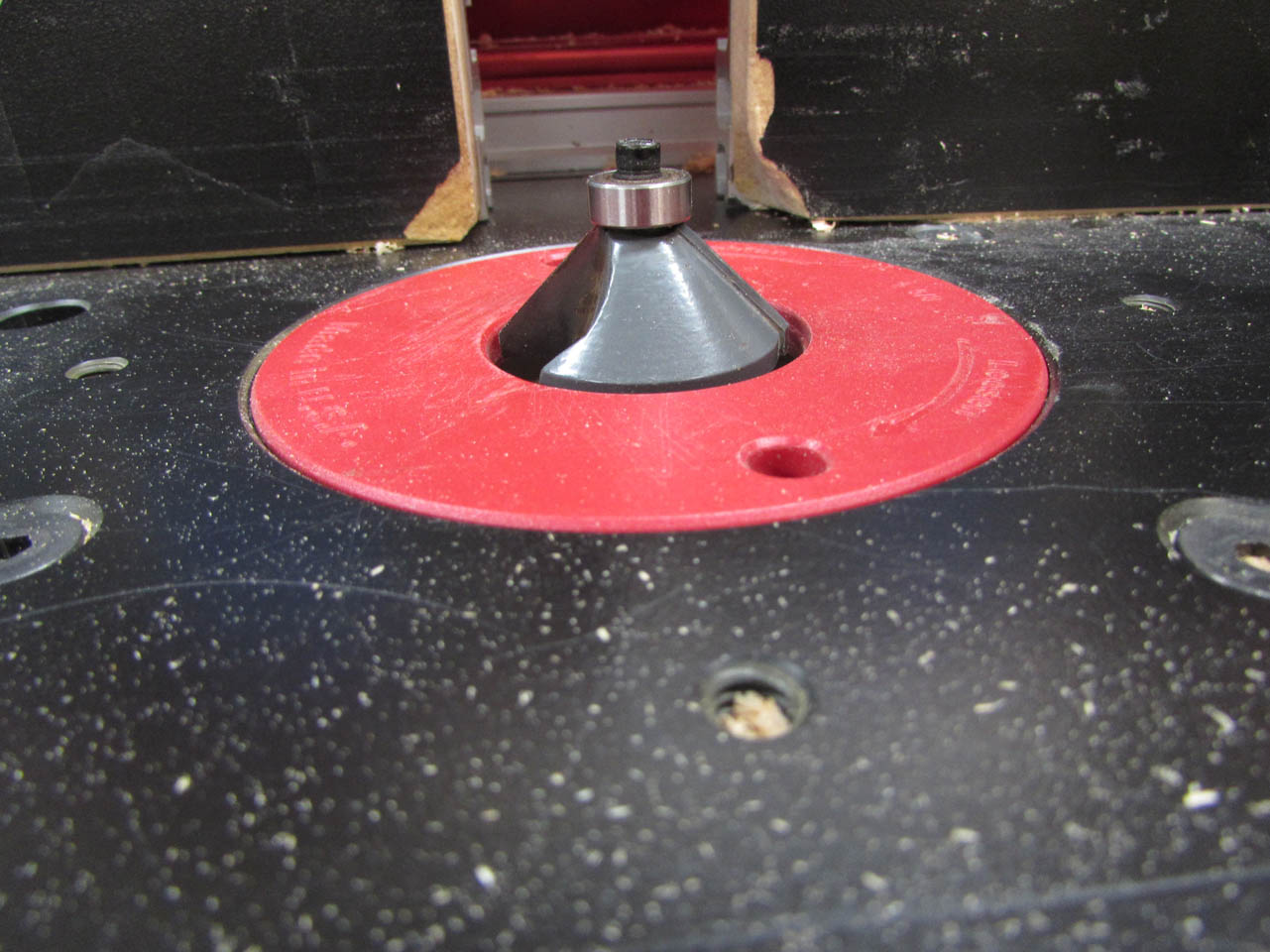 I am using a 45 degree chamfer bit to trim the edges of the base.