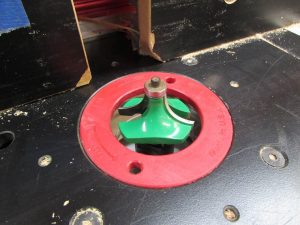Then I switch out that bit for a 3/4″ round-over bit to trim the edge of the base step.