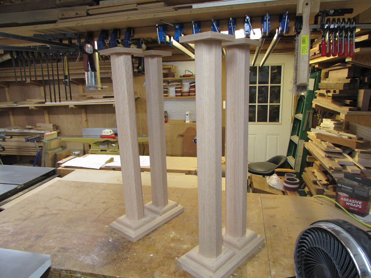 When those were cut, I placed them together so I could see my progress. Not bad, the ambo is shaping up. Still a lot of sanding and the walnut trim to add to the columns, but good progress.